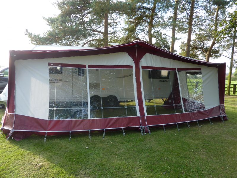 Thinking of Selling?Advertising on C4 Caravans is totally free. Click here for details. Bradcot large awning 1050cm 2003 suitable for 640 twin axle ‘van, burgundy, alloy poles, complete with breathable ground sheet, draught skirt & curtains. Little used.