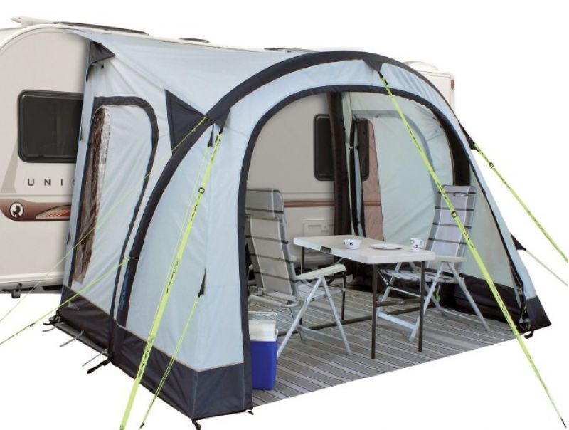 Outdoor Revolution, unique using air frame technology, ultra-lightweight and requiring only one valve and only 2 mins approx to inflate this product. Although not an entirely new concept, this awning is quite simply breathtakingly easy to erect and simple to disassemble. The 325cm width and 250cm projection is ideal not just for weekends but gives exceptional space for those longer holidays too. The Oxygen has heavy duty 150d double ripstop material, one central stability panel to self position the awning whilst inflating, rear stability strap, centre carbon roof pole for extra support (side carbon roof poles optional extra), rear pad poles (optional extra) and external endurance straps for increased stability in challenging weather making it one of the most stable inflatable frameless caravan awnings on the market.