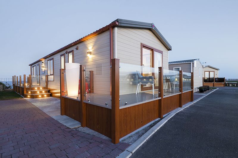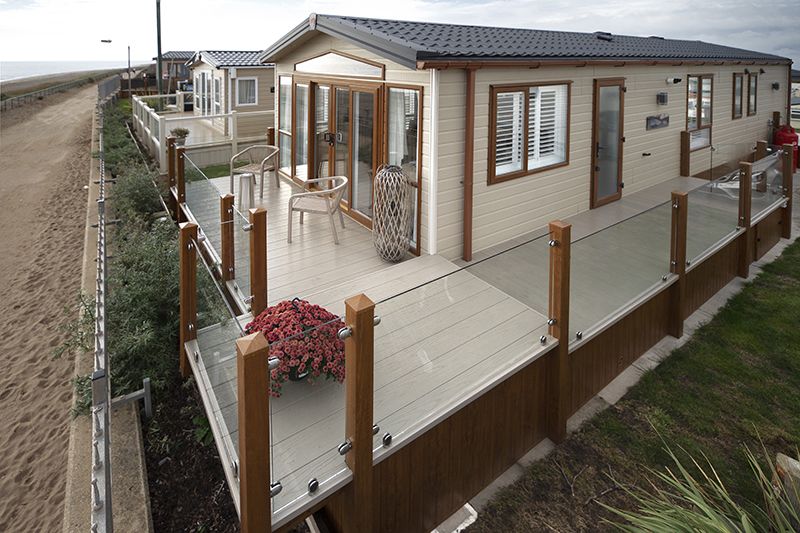 Thinking of Selling?Advertising on C4 Caravans is totally free. Click here for details. Beautiful example of the highly sort after Pemberton Park Lane Lodge. This 2020 model is pristine, as new and sited on a rare beach front plot overlooking the sea. Many extras were added when first ordered including wine cooler to the kitchen, patio doors to the rear master bedroom, shower to the communal bath and bespoke fitted shutters to 4 windows. A feature of the open plan living space is the designer Elgin & Hall fire place, a stand alone 3 piece suite that doubles as an additional bed / futon making this a comfortable 6 birth accommodation. With modern open plan living and breakfast bar, integrated dish washer, washing machine, fridge freezer, oven, grill and microwave this Pemberton comes will all home comforts. A Velux sky light adds addition light to the kitchen area and much needed ventilation in summer. Master bedroom features an en-suite shower room toilet and basin and a walk in wardrobe, bedroom 2 features 2 x single beds and fitted wardrobe. The wrap-around deck in matching golden oak allows the sun to be enjoyed all day, rising east at the front over the sea in the morning and setting south at the rear, the sun rise and sun set is simply breadth taking. Making the most of the space we have had the deck cantilevered over the flower beds giving additional space for Al-fresco dining overlooking the sea and all round clear safety glass so not to obscure the breathless view, this adds a unique perspective and boasts only 5 plots on this area. Build quality is as to be expected excellent and is to residential specification. The site has been overhauled over the last 2 years with the addition of a brand new 3 story office complex due to be completed within the next mth or so. Overall size of the accommodation is 43ft x 14ft, ground rent comes in at £4000 per year is paid for and included in the price.