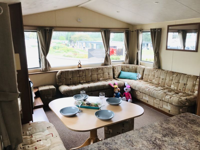 Thinking of Selling?Advertising on C4 Caravans is totally free. Click here for details. This stunning Willerby Rio Caravan has got all you need: Boasting an impressive wrap around bench seating area for all the family and guests to sit around. It has a lovely light, airy and modern feel throughout. 3 Brilliantly sized bedrooms in addition to a pull out sofa bed in the living room ,this extra wide caravan will comfortably sleep up to 8 people